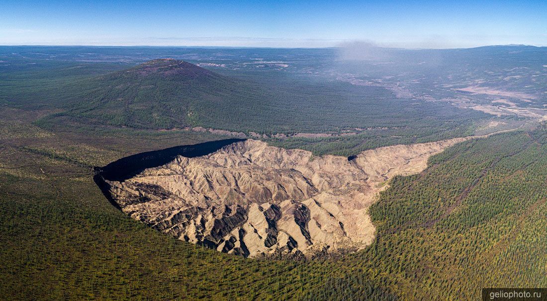Батагайский кратер, также называемый «вратами в подземный мир», — одно из самых необычных мест на карте Якутии. Его гигантская впадина образовалась в результате таяния вечной мерзлоты и продолжает стремительно увеличиваться, ежегодно расширяясь на десятки метров. Этот природный феномен интересен не только учёным, которые исследуют древние слои земли, но и путешественникам, ведь вид с воздуха на кратер поражает масштабами и напоминает кадры с другой планеты. С высоты можно разглядеть разветвлённые овраги, уходящие вглубь, и причудливые линии рельефа, создающие завораживающую картину разрушения и одновременно возрождения природы.