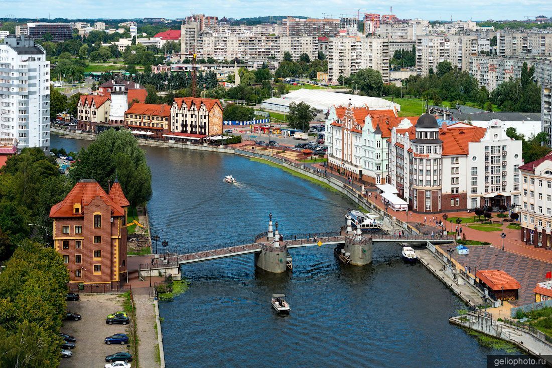 Калининград — город, чья история уникальна и многогранна. Расположенный на берегу Балтийского моря, он славится своей архитектурой, отражающей влияние немецкой, советской и российской культур. Взгляд с высоты открывает панораму старинных районов, современных кварталов и зеленых парков, создавая впечатляющий контраст. Одной из ключевых достопримечательностей города является остров Канта с величественным Кафедральным собором, который особенно эффектно смотрится с воздуха. Вид на набережную реки Преголи, Рыбную деревню, современный стадион и Музей Мирового океана делает Калининград особенно живописным, особенно в вечернее время, когда город погружается в мягкое свечение огней.