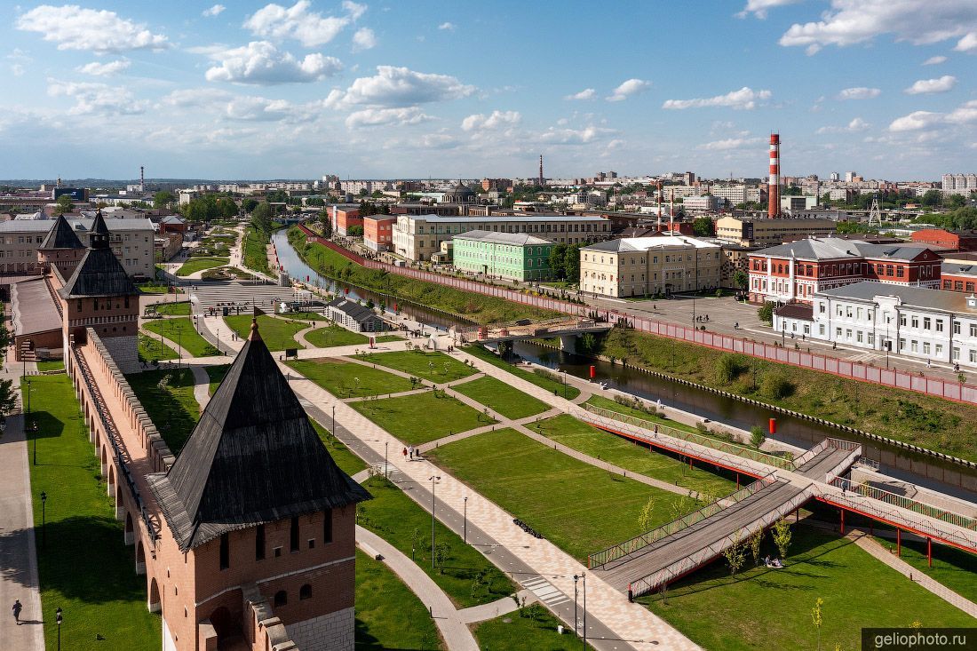 Казанская набережная в Туле — одно из самых атмосферных и живописных мест города, преображённое в ходе масштабной реконструкции. Её протяжённость составляет более километра, а пешеходное пространство вдоль Упы стало настоящей точкой притяжения для жителей и туристов. Здесь соседствуют старинные здания и современные общественные пространства, а гармоничное освещение, мостики и арт-объекты формируют выразительный облик набережной в любое время года. Это пространство активно используется для прогулок, велопоездок, городских событий и фотосессий, а в вечерние часы открывается особенно красивый вид на кремль и его подсветку.