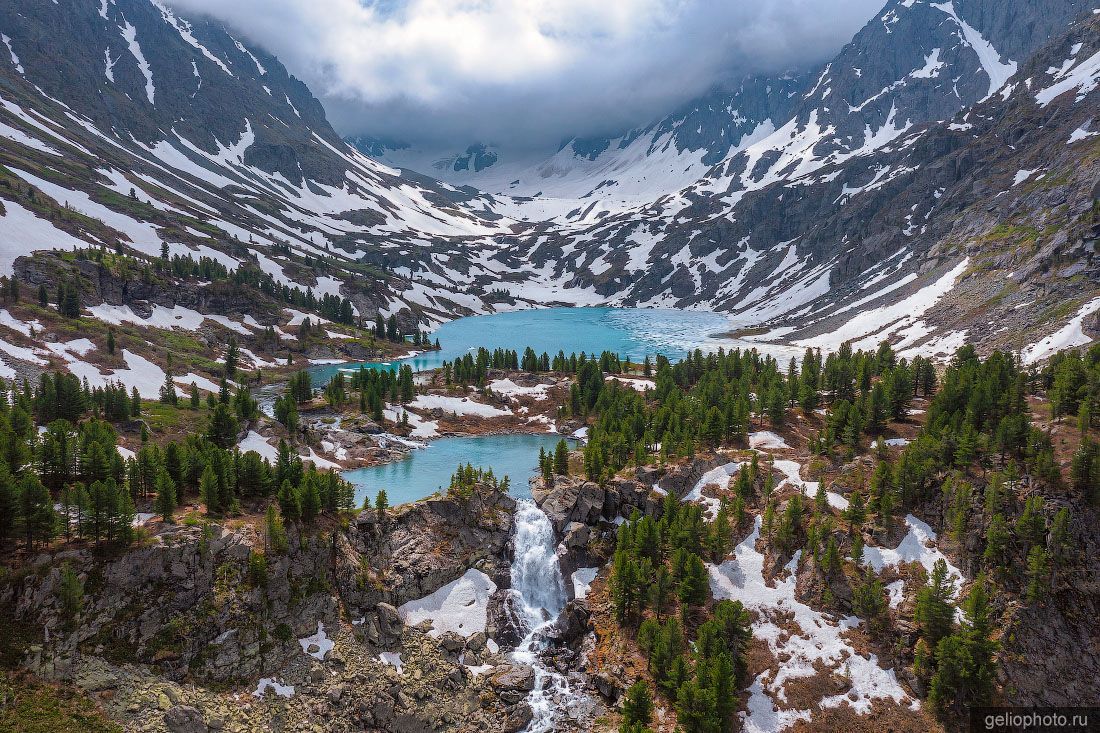 Фотобанк Gelio Photo предлагает подборку профессиональных фотографий Мультинских озёр с высоты.