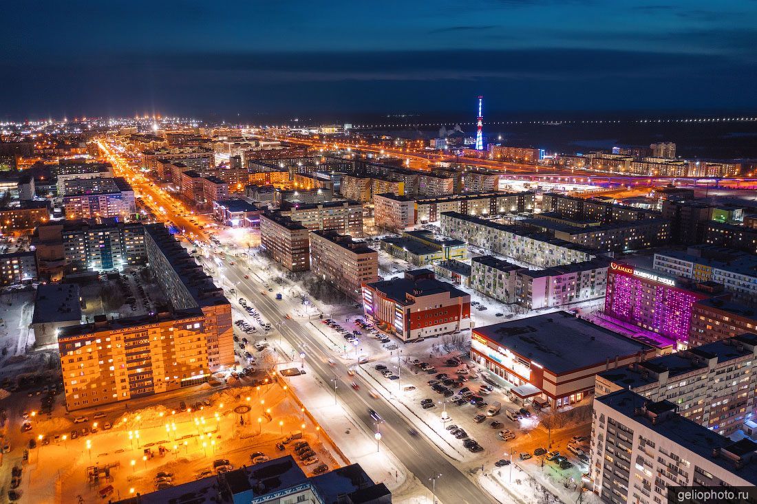 Вечерний Новый Уренгой — это особое зрелище, когда огни города рассыпаны по заснеженным улицам, а свет витрин, фонарей и промышленных площадок отражается в льде и снегу. Город, расположенный в суровых условиях Ямала, с наступлением вечера словно преображается: холодные пейзажи смягчаются мягким электрическим светом, а на фоне северного неба появляются силуэты жилых кварталов, газовых заводов и магистральных трубопроводов.