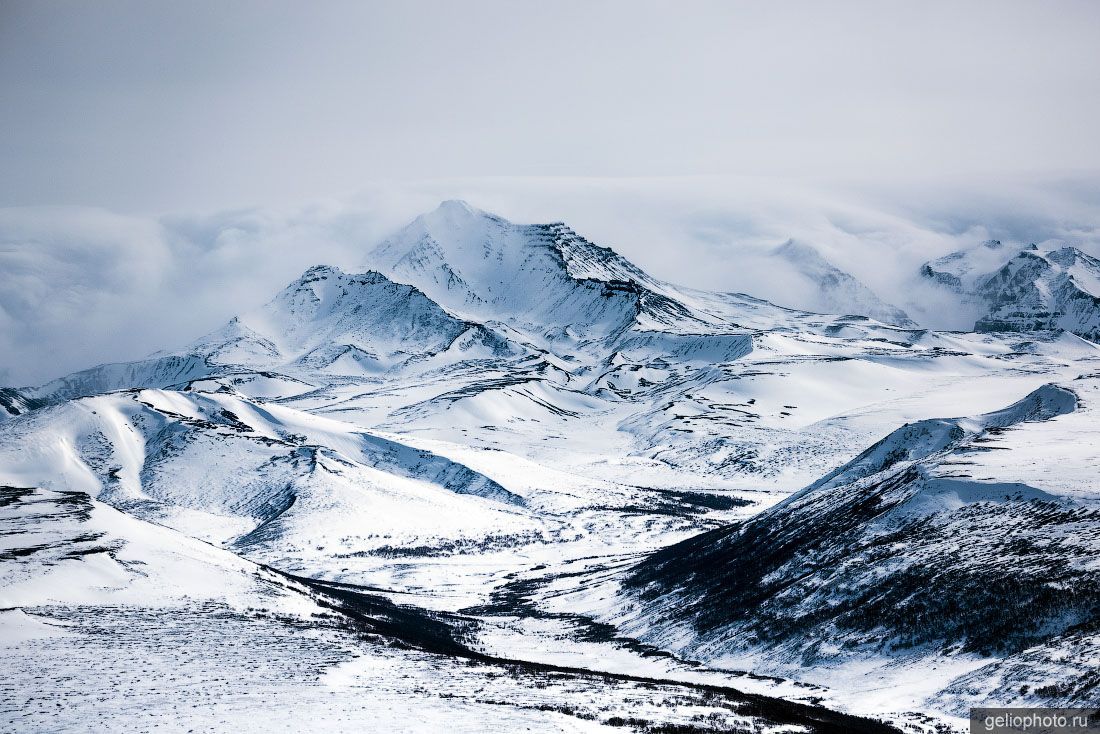 Зимой север Камчатки превращается в один из самых суровых и красивых ландшафтов на территории России. Вьюги вырисовывают на склонах хребтов геометрические узоры, замёрзшие устья рек и бухты покрываются толстым слоем льда, а вулканы завораживают своим видом на фоне ярко-синего неба. Даже малая часть солнечного света в этих широтах делает снежные просторы слепяще яркими, а белизна тундры подчёркивает отчётливые контуры гор и скал. С высоты особенно заметен контраст между поселениями и бесконечной ледяной тишиной — зимняя Камчатка остаётся неизменной и величественной, словно застывшая во времени.