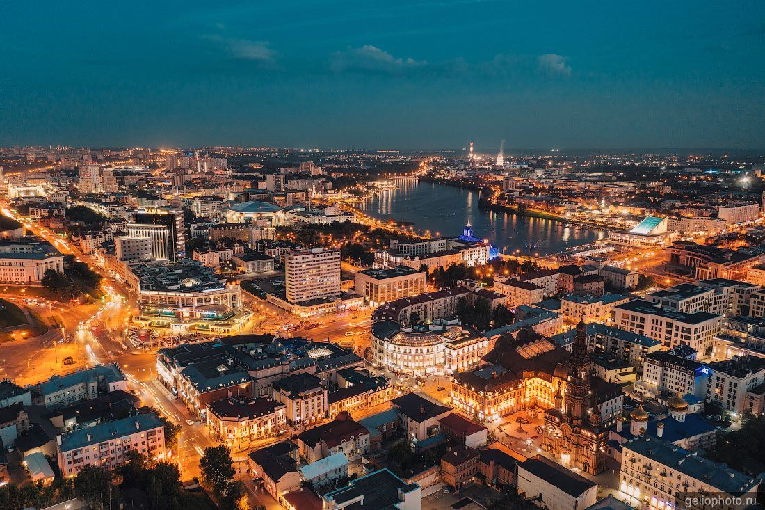 Казань, один из крупнейших городов России, поражает своей красотой в вечернее время. С высоты открывается захватывающий вид на Казанский Кремль, набережную реки Казанки и современный деловой центр города. Вечерние пейзажи Казани с высоты демонстрируют величественные мосты, просторные площади и узнаваемые силуэты знаковых зданий, превращая город в яркий световой узор, который особенно эффектно смотрится в лучах закатного неба.