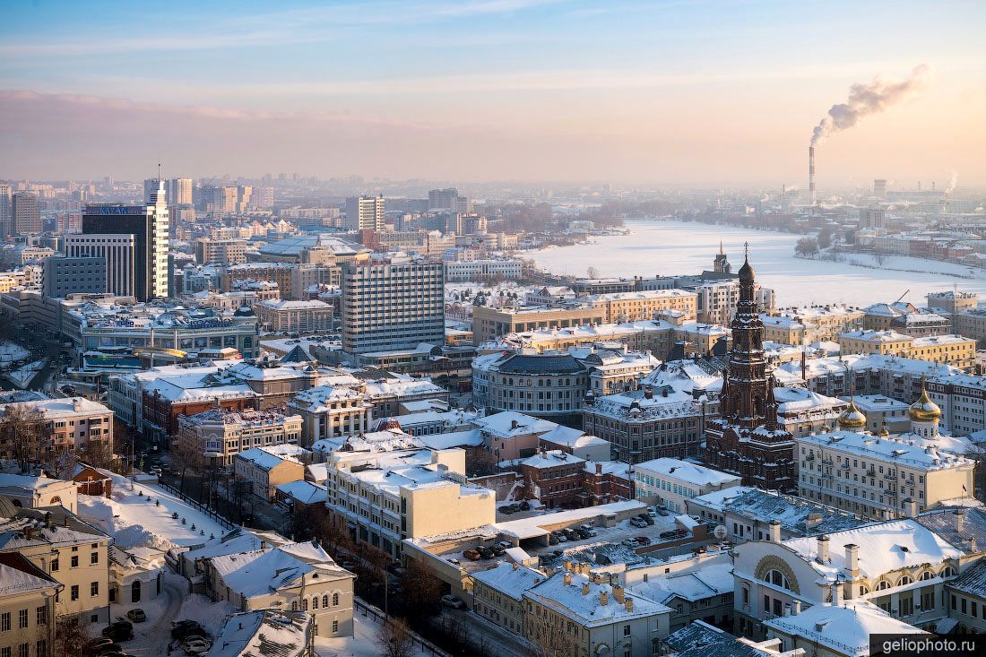 Зимняя Казань с высоты – это захватывающее зрелище, где старинные соборы и современные кварталы утопают в снегу, а река Казанка разделяет город на величественные панорамы. В это время года столица Татарстана показывает потрясающие виды: заснеженные купола Казанского Кремля, огни Кремлёвской набережной, ледяной покров на Волге и оживлённые улицы во время зимних праздников. Благодаря фотографиям с высоты можно увидеть гармонию исторической архитектуры и современных локаций, оценить масштаб города и почувствовать его зимнее очарование.